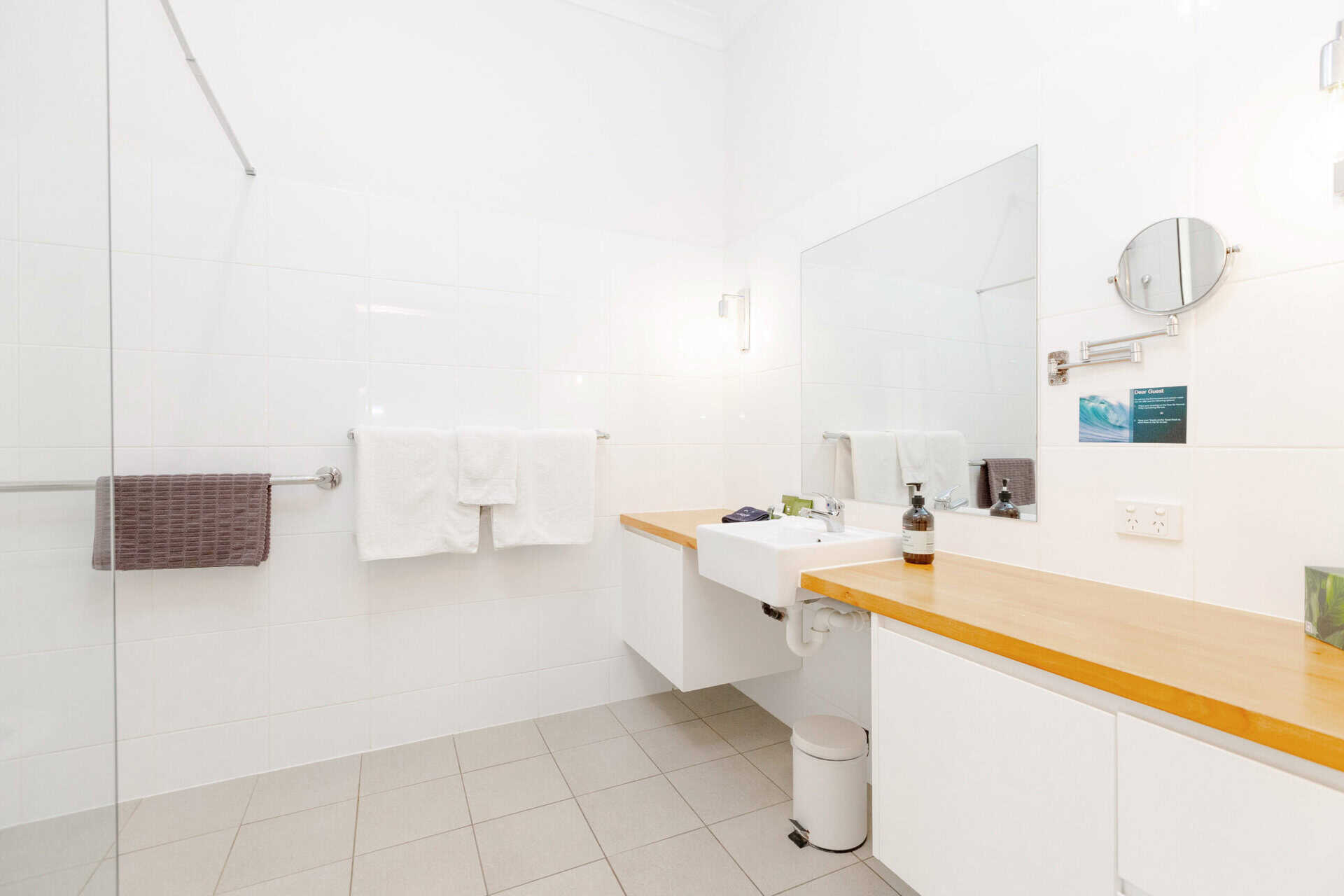 The room includes a self-contained kitchenette for preparing light meals, with the option to explore nearby hotels and restaurants if you prefer to dine out. King Room 1 is ideal for guests seeking comfort and accessibility, with an open shower, optional wheelchair access, and additional support features available on request.